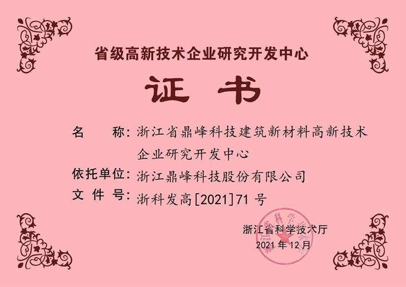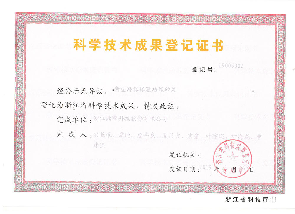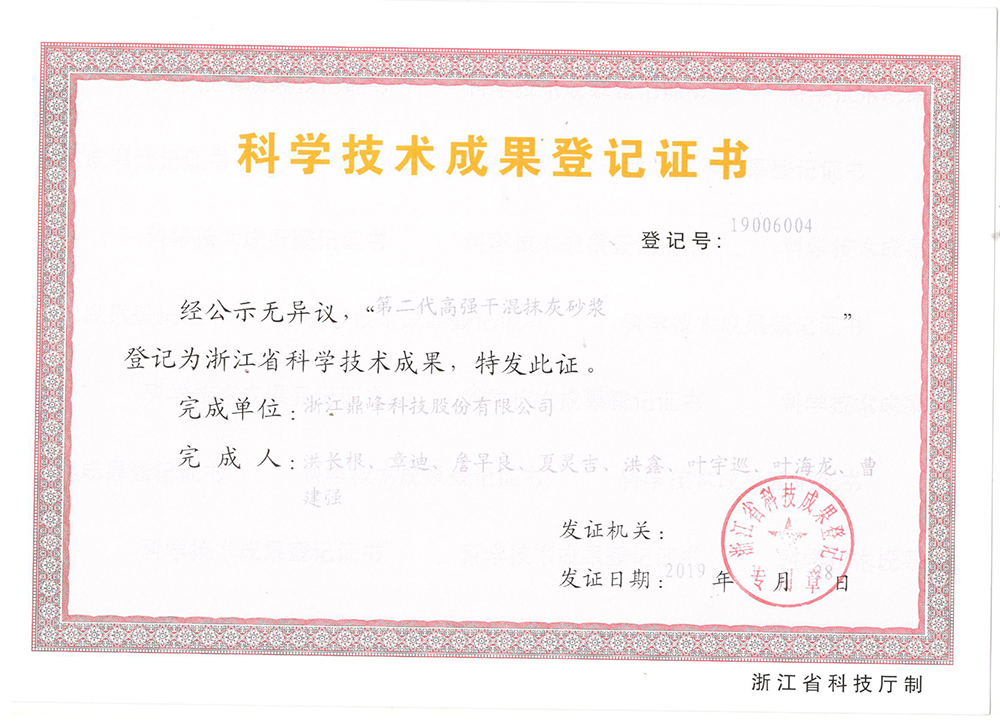 公司為國家級“專精特新”小巨人企業(yè),國家級高新技術(shù)企業(yè),擁有與多家高校聯(lián)合組建的省級研發(fā)中心。公司經(jīng)浙江省散裝水泥發(fā)展中心、浙江省建筑業(yè)管理局備案,為浙江省首批通過試驗室驗收的企業(yè)。近年來公司陸續(xù)通過了質(zhì)量管理體系認(rèn)證、干混砂漿產(chǎn)品認(rèn)證、環(huán)境管理體系認(rèn)證、能源管理體系認(rèn)證、職業(yè)健康管理體系認(rèn)證、中國綠色建材產(chǎn)品認(rèn)證、工業(yè)化與信息化融合管理體系評定。自2017年起公司已連續(xù)五年被中國建筑材料聯(lián)合會預(yù)拌砂漿分會評為“全國預(yù)拌砂漿行業(yè)先進(jìn)企業(yè)/優(yōu)秀企業(yè)/最具推動力企業(yè)”。
